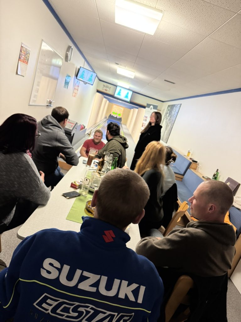 Am 05. November 2025 hieß es für uns: Sport frei auf der Kegelbahn! Bevor wir die Bahn unsicher machten, stand die Grundlage auf dem Plan. Bei einem leckeren gemeinsamen Essen wurde erst einmal ordentlich geschlemmt. Gut gestärkt ging es danach an die Kugeln.