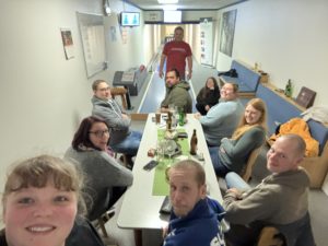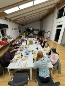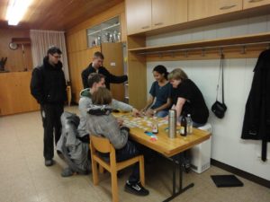 Wie jedes Jahr machen wir nach der Fasnet am Aschermittwoch ein gemeinsames Essen mit selbstgemachten Kässpätzle. Highlights: Dani stand an der Spätzlepresse, Roy lernte per Tutorial Zwiebel schälen und die Jungs versuchten dieses Jahr sogar noch Pochierte Eier zu machen. - Escape Room „HOSTEL“