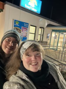 Draußen ist es kalt – also ab ins warme Wasser. Leider hatten nicht viele Zeit und so blieb es an Bettina und Eva hängen, den Abend so richtig zu genießen. „Wir wollten ja schwimmen, aber da war so viel los im Schwimmerbecken sodass wir erstmal … - A Gsond’s Nuis
