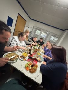 Nach unserem erfolgreichen Dorfabend gab es ein kleines Helferfest. Gemeinsam schauten wir die Aufnahmen des Abends an, aßen Leberkäswecken und anschließend spielten wir eine Runde „Saufery“. - In der Weihnachtsbäckerei